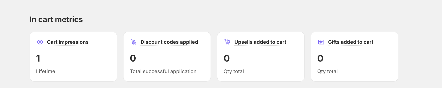 - Cart Impressions: The number of times Slide Cart has been shown to your customers.