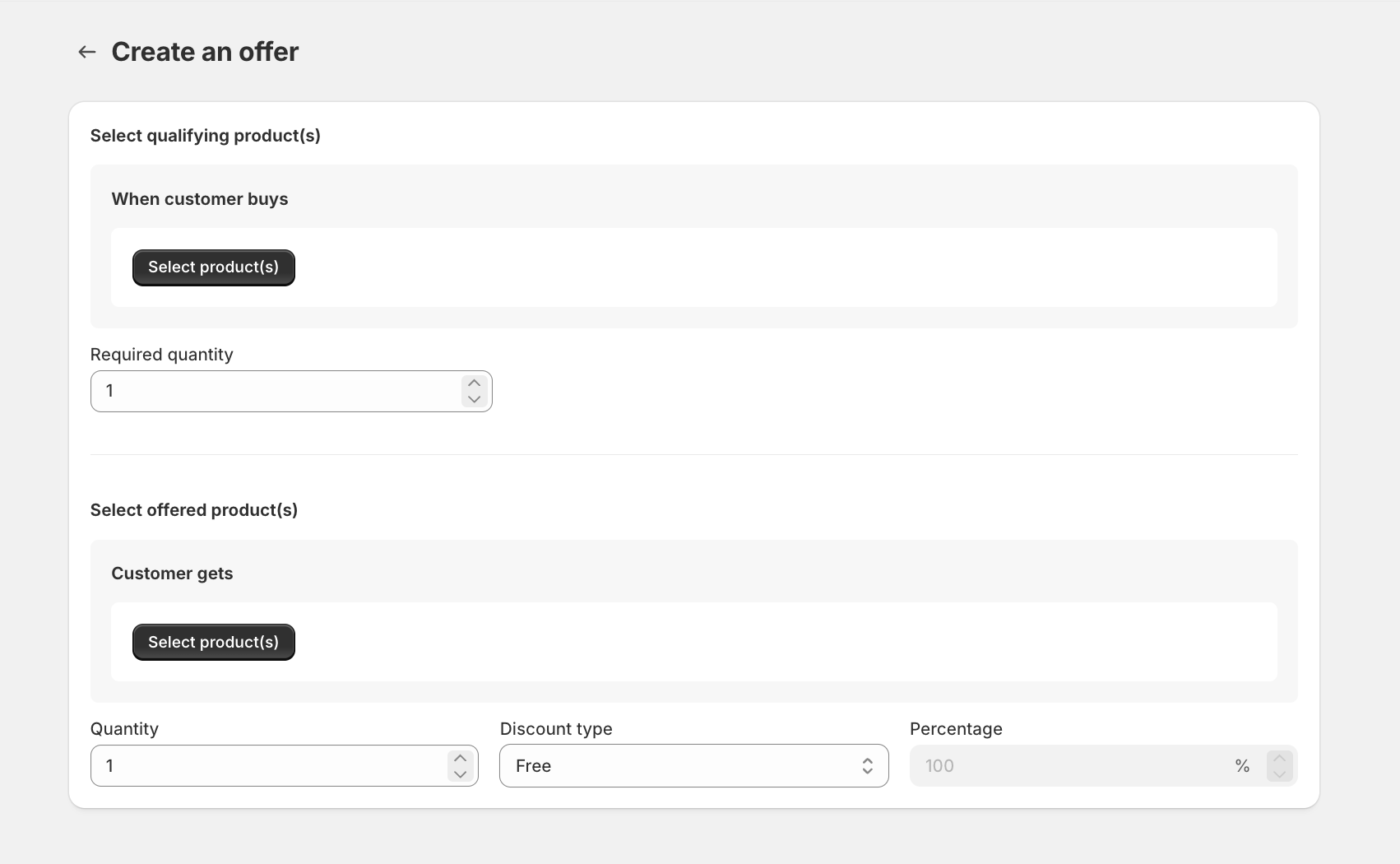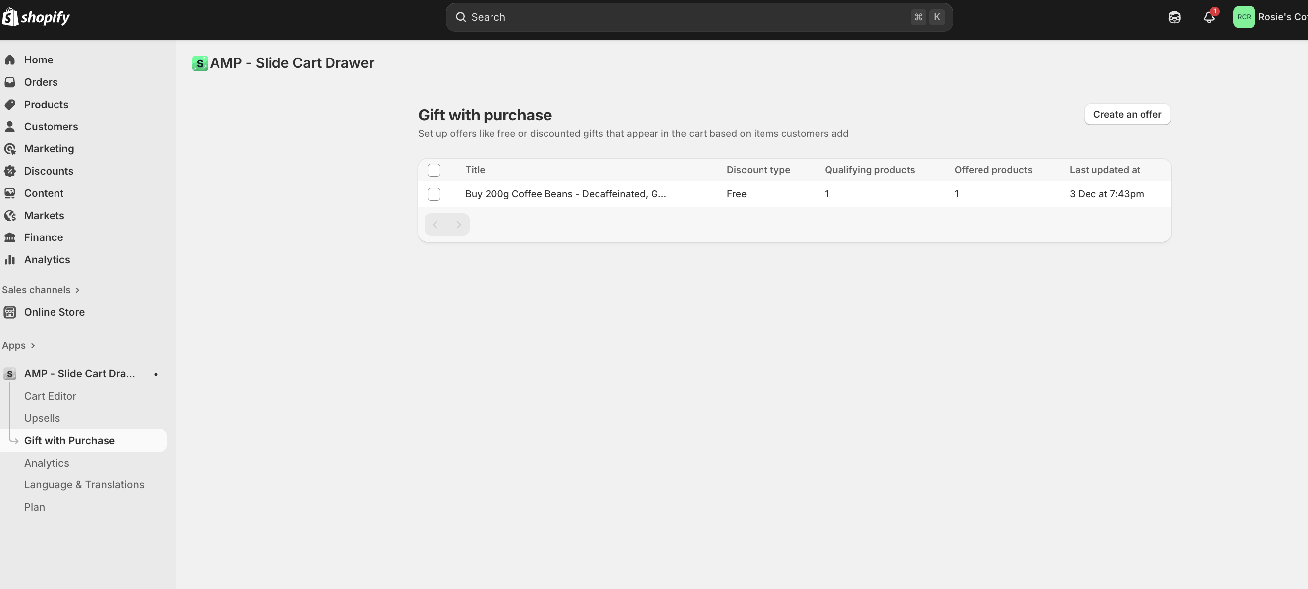 - Go to the Gift with Purchase tab on the app's dashboard and click on Create an offer section.