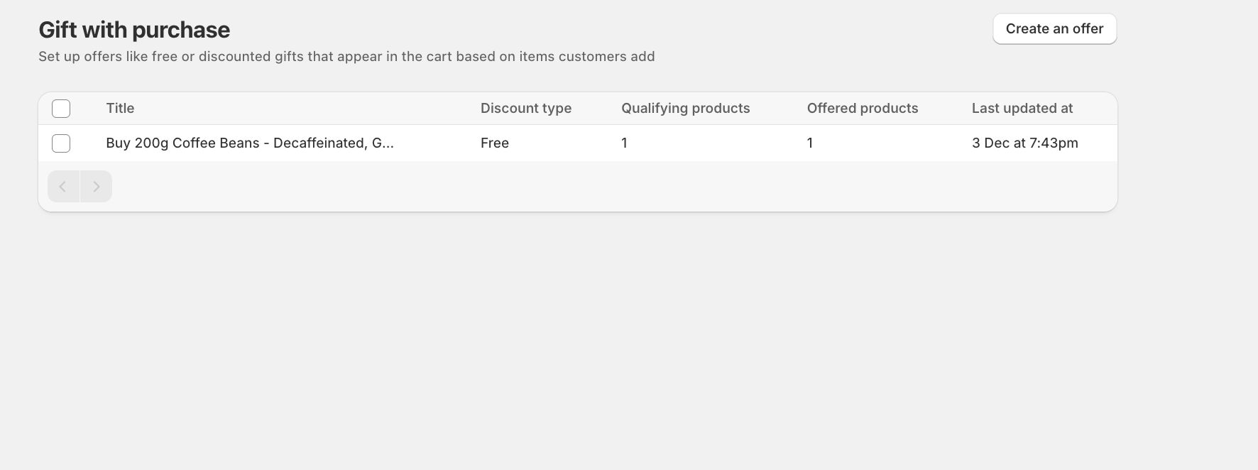- Click Create Buy X get Y combo and check that your offer is created on the Gift with Purchase page