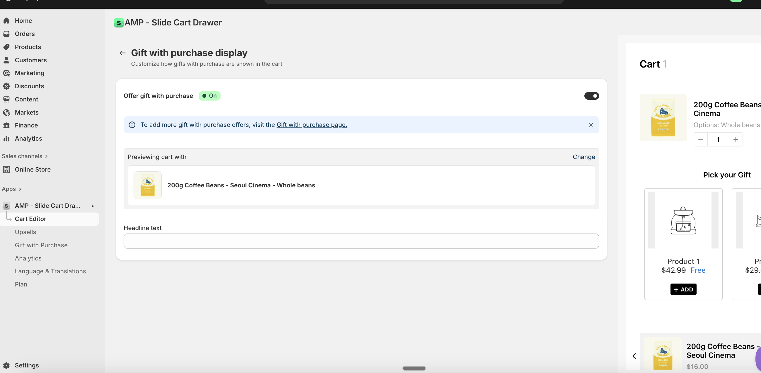Keep in mind that you must set up the complementary discount on your Shopify Discounts Admin for this feature to work as expected.