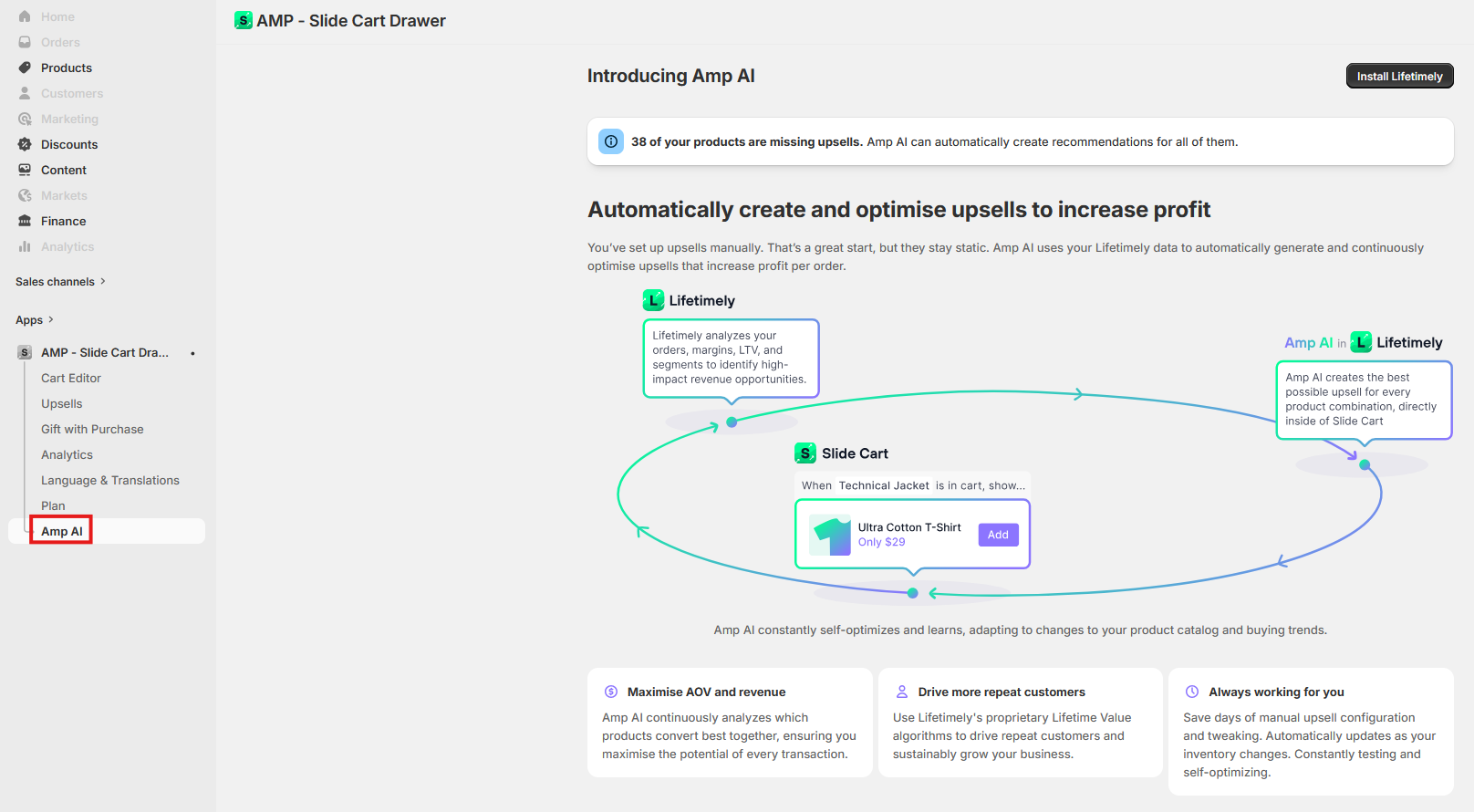 - If you have Lifetimely by AMP installed, consider starting with Amp AI, as it helps remove guesswork and continuously optimizes recommendations.